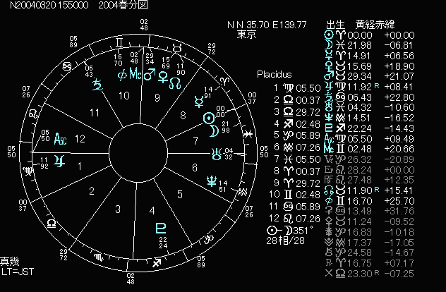 春分図のチャートでは、東の地平線に木星が瞬いているため、これまでの閉塞感や不景気からは脱出傾向にあるという見方が出てくるでしょう。実際には他にも厳しい星の状態が多いため、あまりに楽観的になると危険も潜んでいると言えますが、それぞれの気持ちが明るくなることで景気づけになることもあるでしょう。